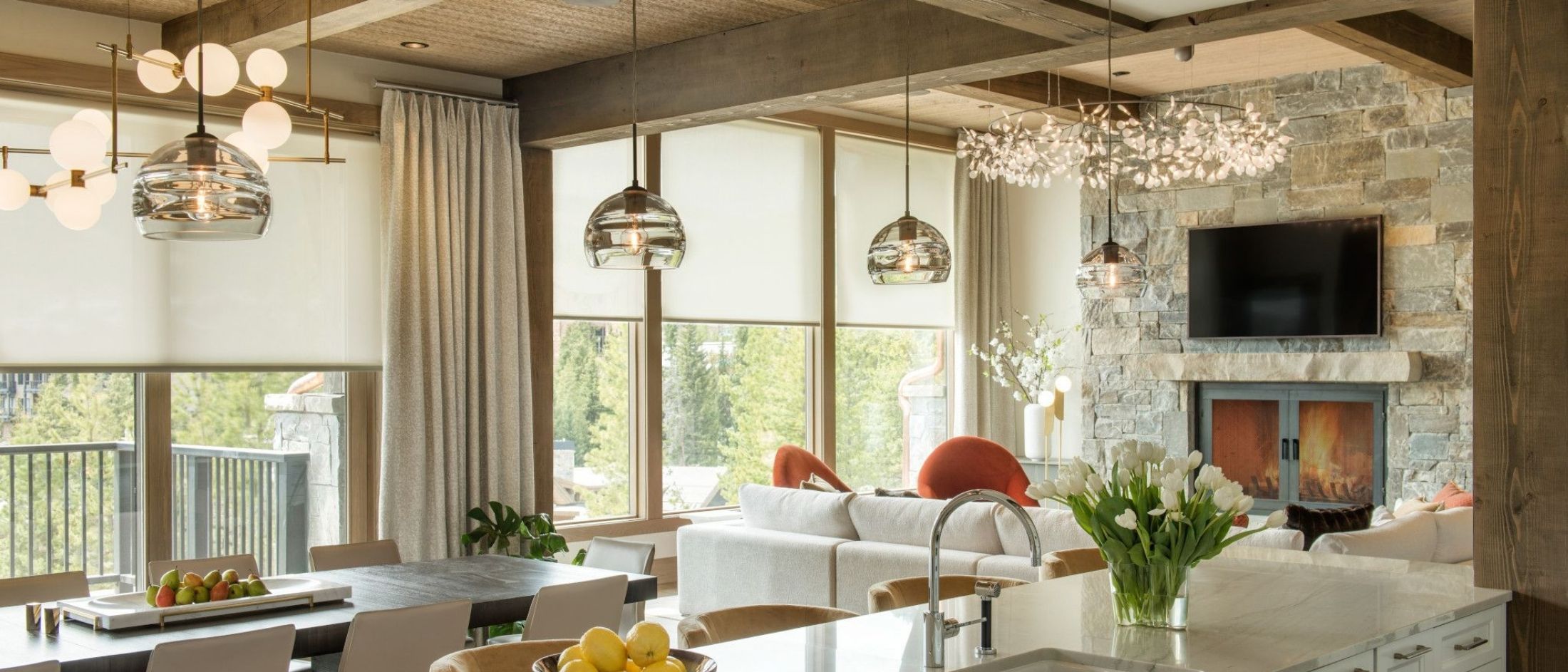 Shades draw in rhythm with the sun — opening to brighten mornings, filtering light as temperatures rise, and closing at dusk for privacy. Thermostat and lighting adjust in unison, supporting comfort, circadian balance, and energy efficiency with every quiet, purposeful movement.